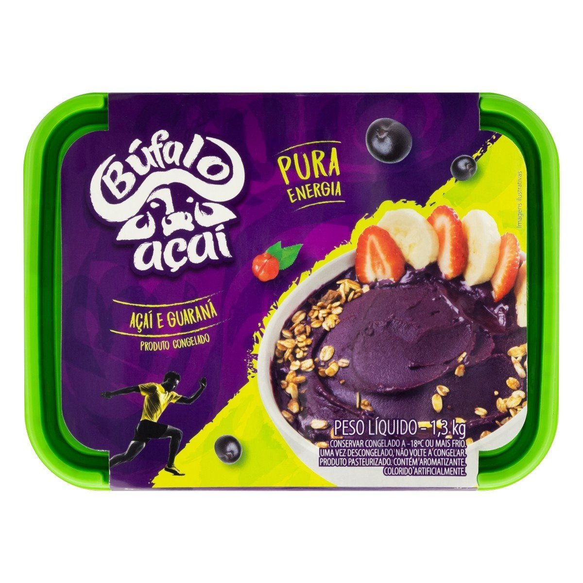 Açaí Búfalo 1,3 kg: polpa de açaí amazônico, tradicionalmente consumido com guaraná, granola ou farinha.