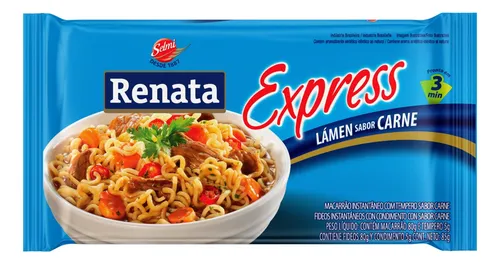 O Macarrão Instantâneo Sabor Carne Renata 85g é um produto alimentício prático e rápido de preparar, popularmente conhecido como “miojo” no Brasil. Ele consiste em macarrão précozido e desidratado, acompanhado de um sachê de tempero com sabor de carne. Tradicionalmente, no Brasil, é utilizado como uma refeição rápida, especialmente em situações onde há pouco tempo para cozinhar. O preparo envolve adicionar o macarrão a água fervente e misturar o tempero após o cozimento, resultando em uma