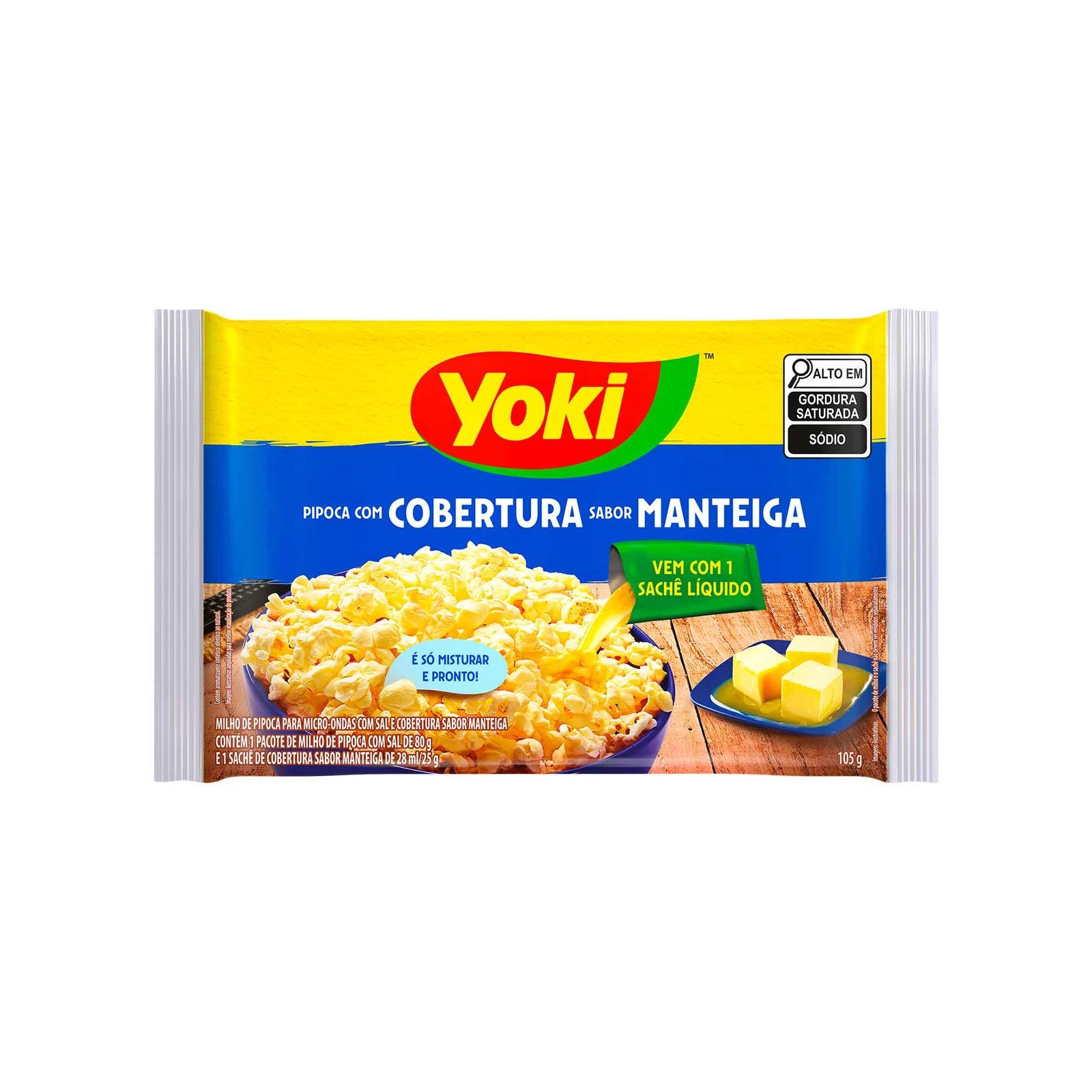 Pipoca de microondas Yoki sabor manteiga, tradicional lanche brasileiro para diversas ocasiões.